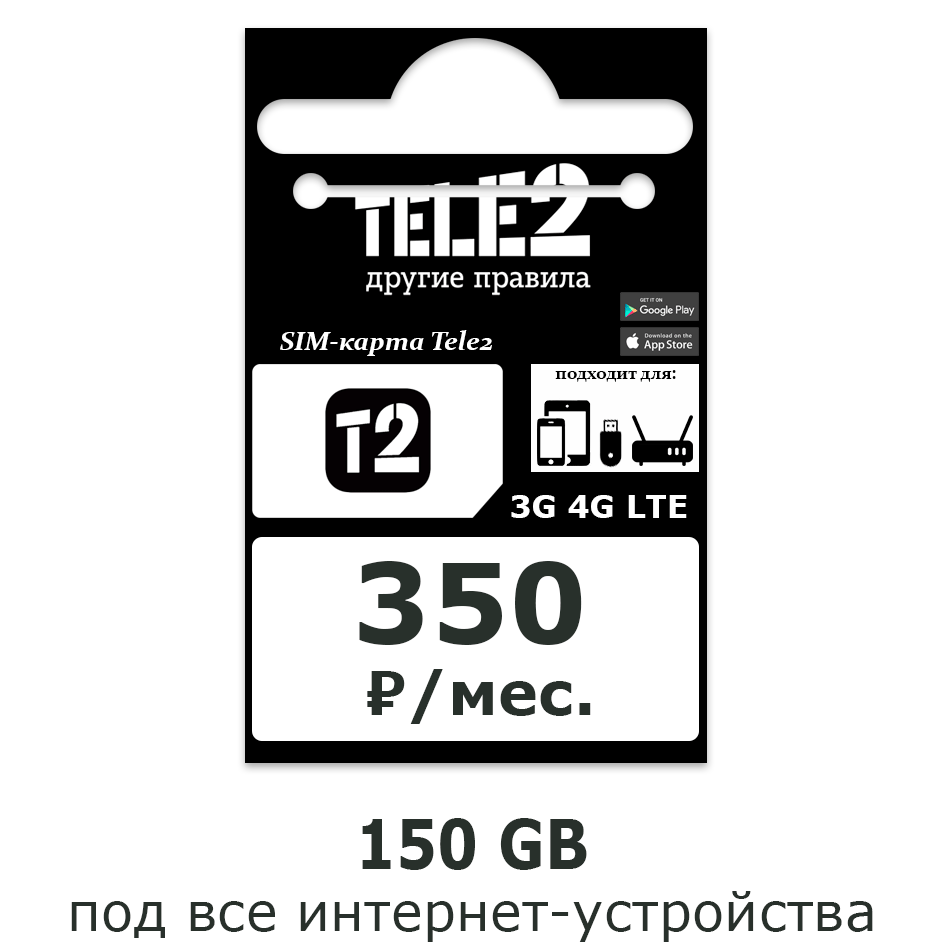 SIM-карта Теле2 (150 ГБ для модема)